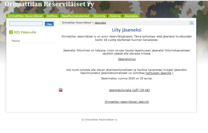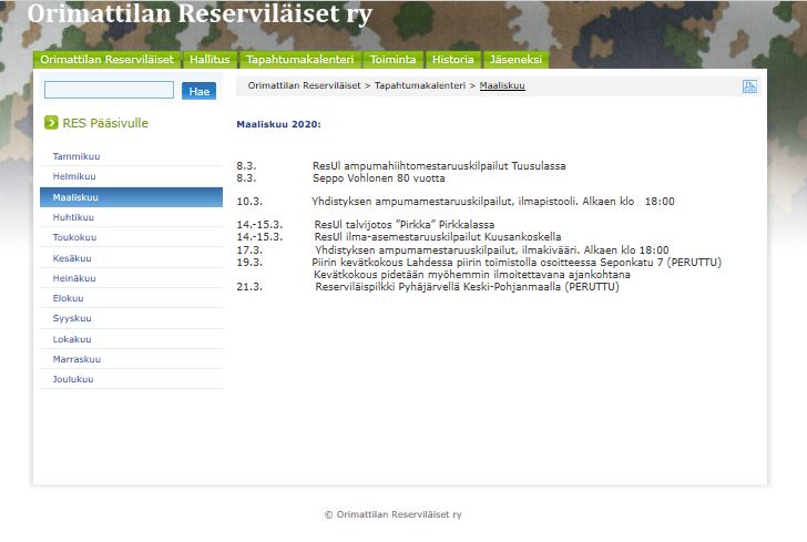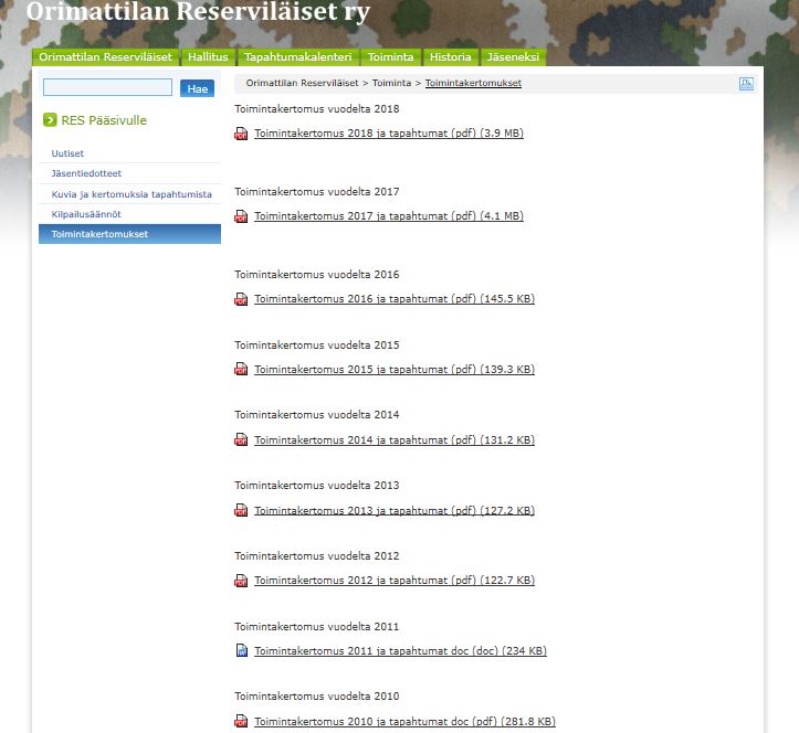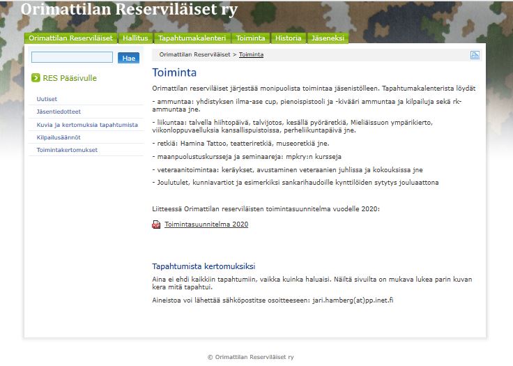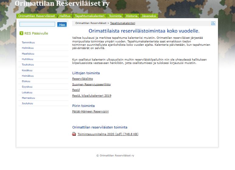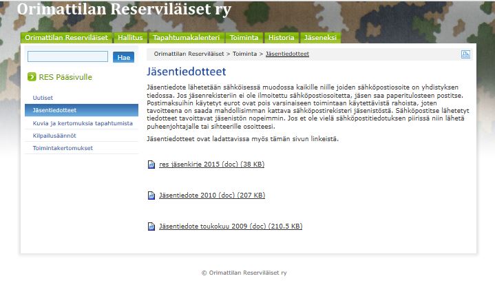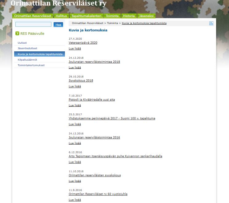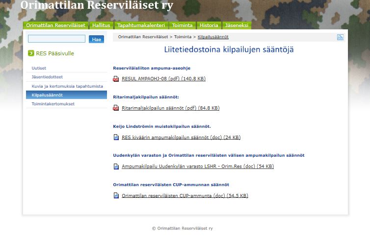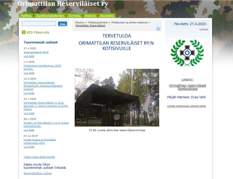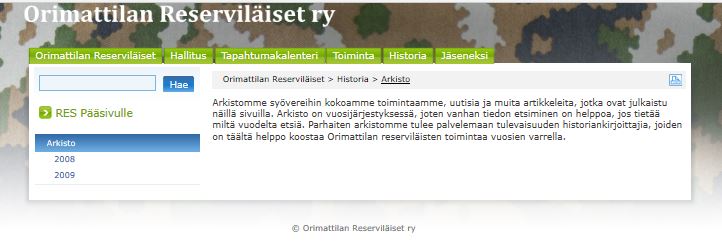 Alla kuvagalleriaa yhdistyksen v. 2008 perustetuista nettisivuista. Sivut toteutettiin reserviläisliiton tuottamien sivustojen alle, kuten nykyisetkin sivustot.