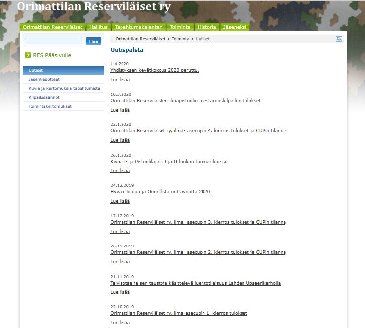Sivustot poistuivat käytöstä toukokuussa 2020, kun uudet nettisivut otettiin käyttöön ja sitä ennen nettivastaava vietti lukemattomia tunteja siirtäen sivustoille tallennettuja tietoja uusille sivuille. Valitettavasti moni uutinen, kuva ja tiedosto jäi siirtämättä määräpäivään mennessä. Mutta yritämme parhaamme mukaan saada tietoja vielä takautuvasti tallennettua näille uusille sivuille.